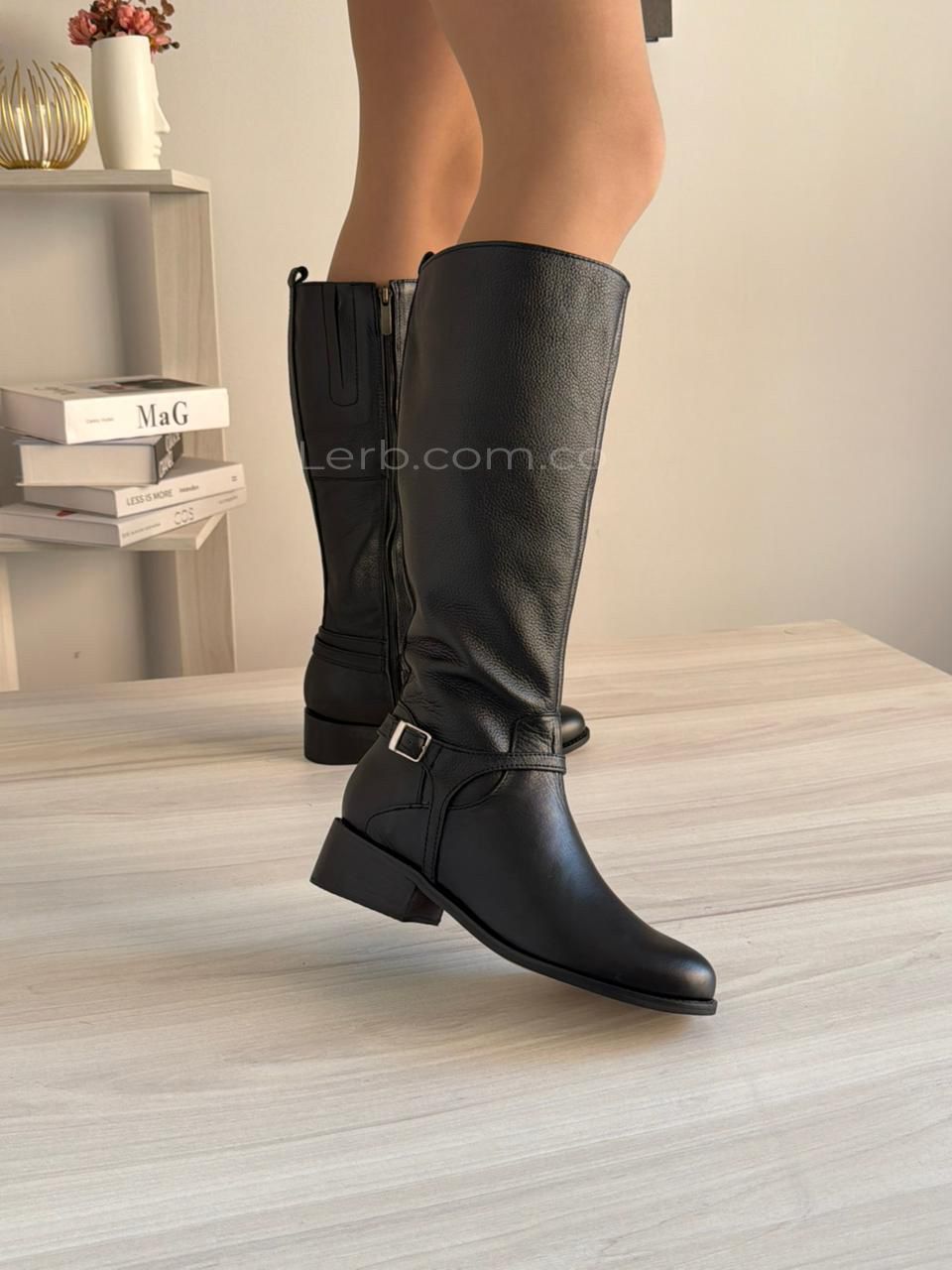 Bota Vanta, su diseño de caña alta crea un efecto estilizado y elegante que alarga visualmente la pierna, mientras la correa con hebilla aporta un detalle sutil pero con carácter, logrando un look moderno, limpio y sofisticado.