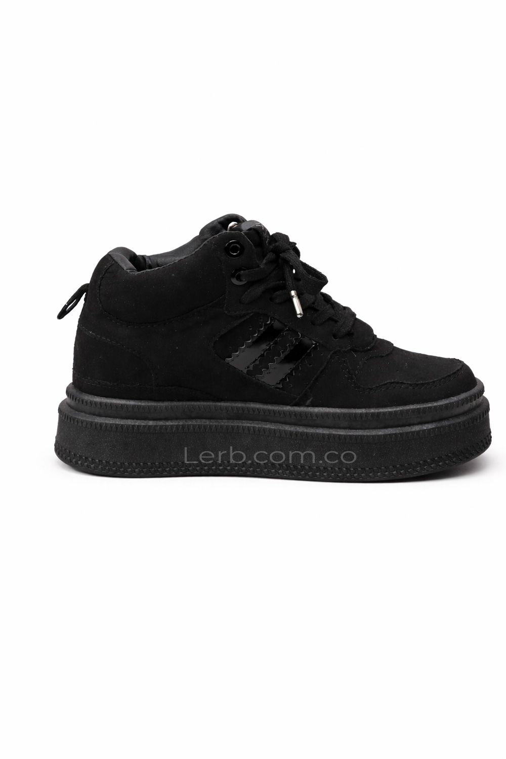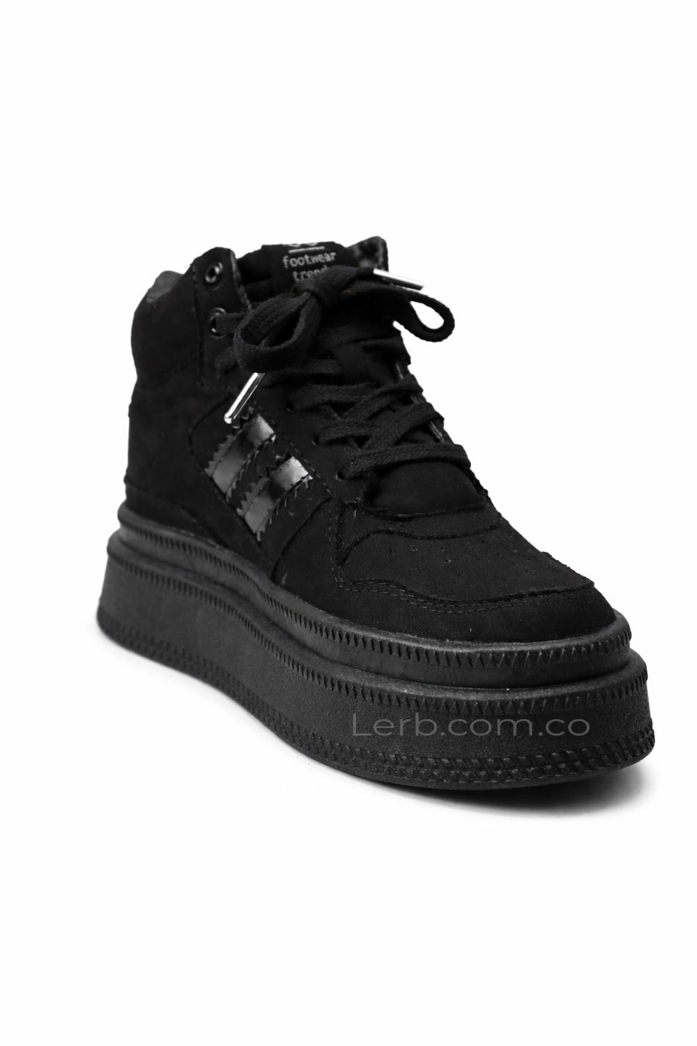 Su plataforma alta totalmente negra proporciona altura y confort, perfecta para looks casuales o de noche. Los cordones gruesos y los acabados metálicos en las puntas refuerzan su diseño contemporáneo y lleno de carácter.